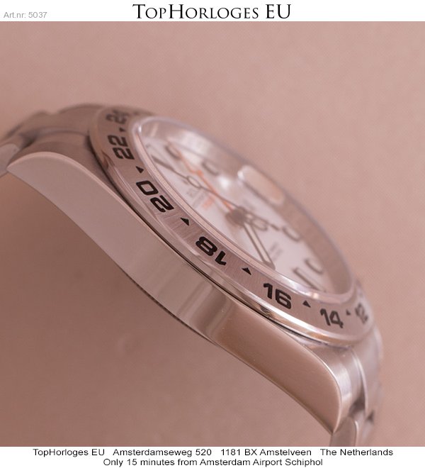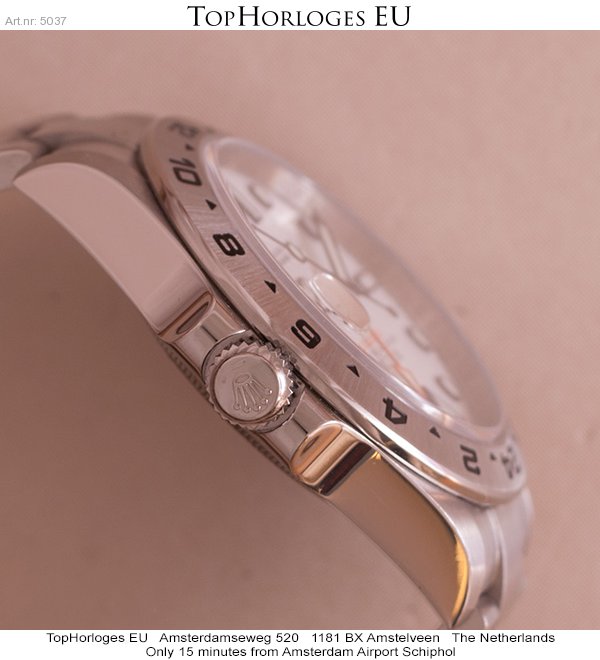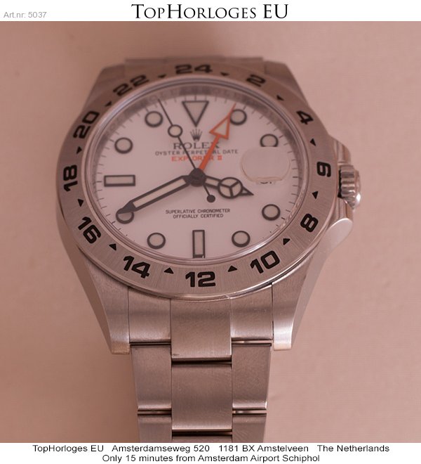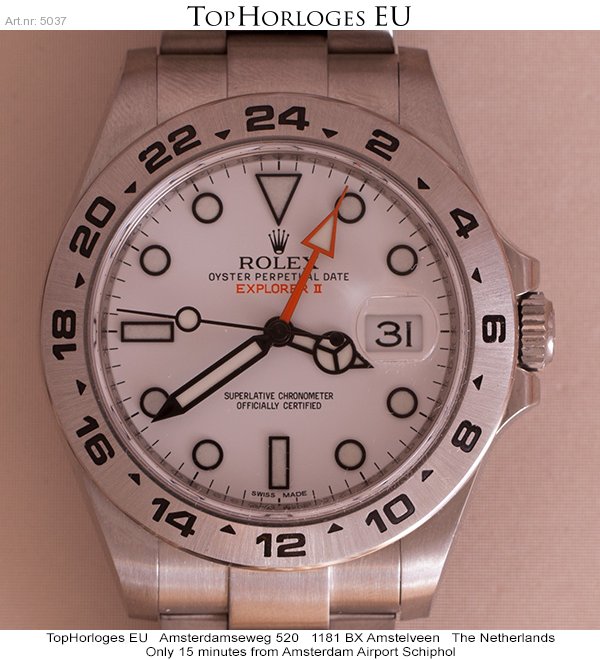 Almost unworn, steel Rolex Explorer 2, with white dial. This stunning dual time is in a mint condition.