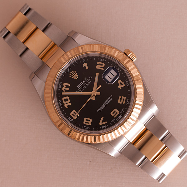 An gorgeous steel and golden Rolex, this allmost unworn Datejust 2 comes with a stunning black Arabic dial.