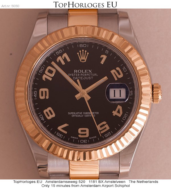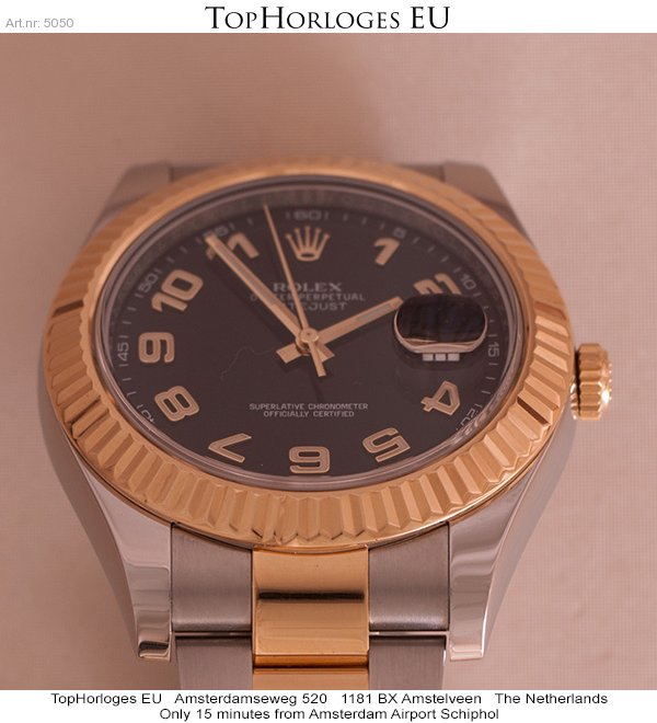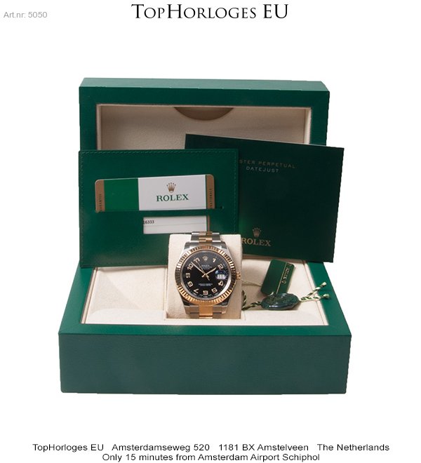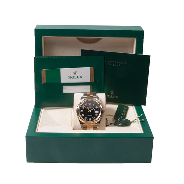 Een zeer weinig gedragen goud-stalen Rolex DateJust 2 met prachtige zwarte wijzerplaat en gouden Arabische cijfers. Geheel kompleet met doos en papieren. (NL10/2015)