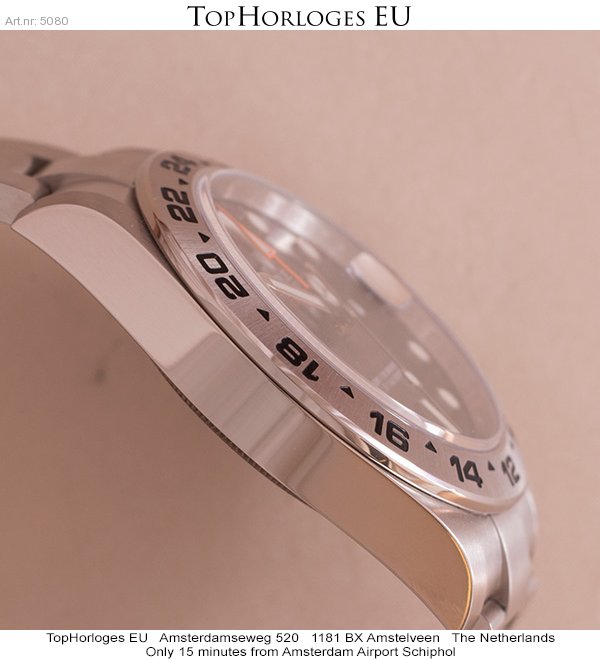 Werkelijk in nieuw staat verkeerende Rolex Explorer 2, deze stalen uitvoering met de zwarte wijzerplaat is in een mint conditie.