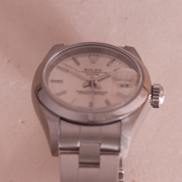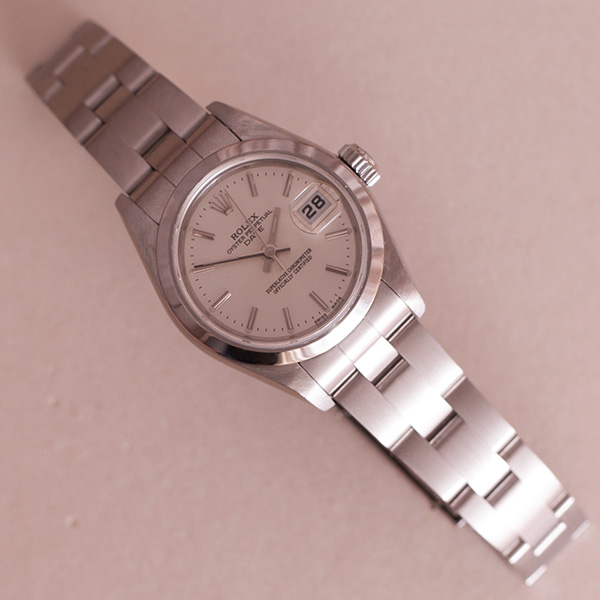 Gorgeous ladies Rolex Date. This desirable steel version is in a stunning condition. Comes complete with the box, booklet, hang tag's and the papers.(2007NL)