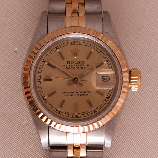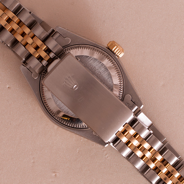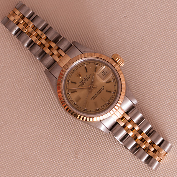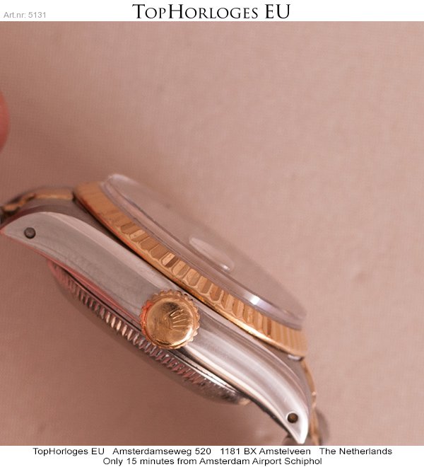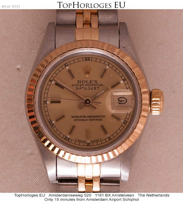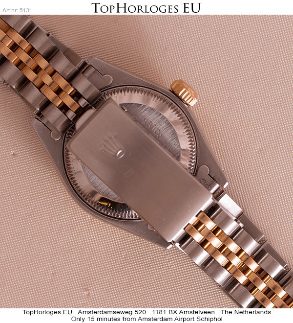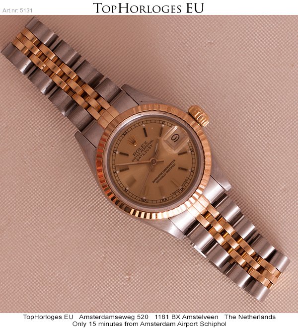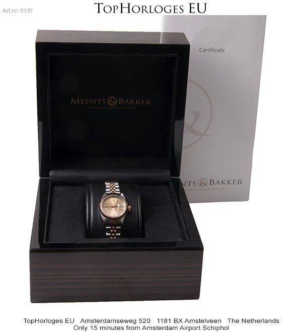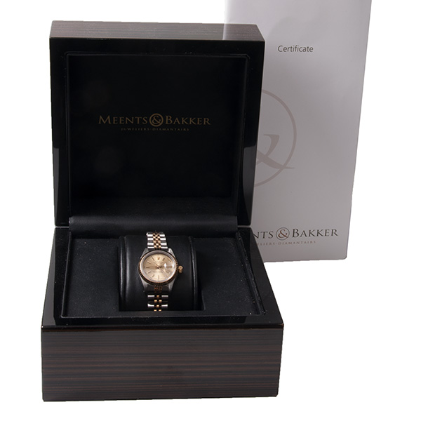 A gold / steel ladies Rolex Datejust. Fully checked and provided service work. Comes with a luxury box, certificate and 12 months warranty of our shop.