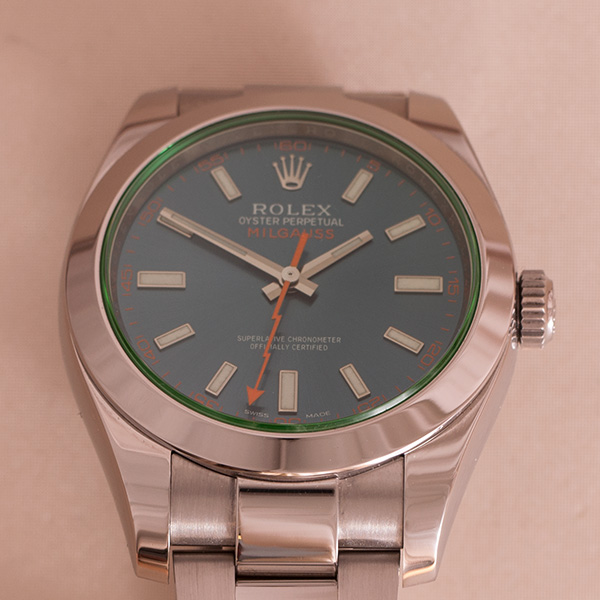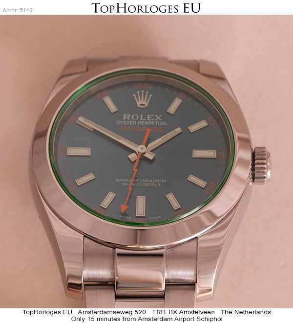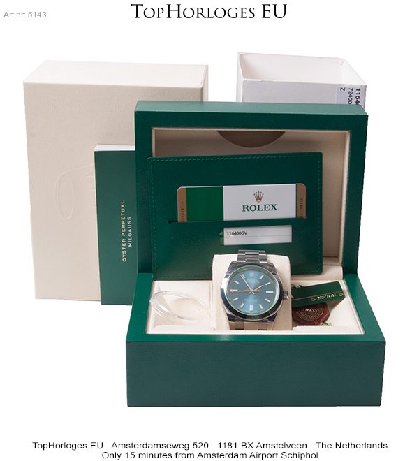 Prachtige Rolex Milgauss, deze stalen uitvoering met het groene glas is in een prachtige haast ongedragen staat.