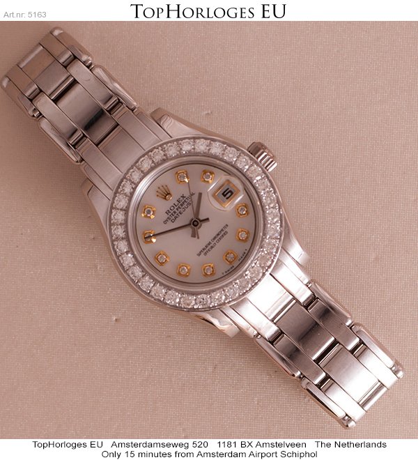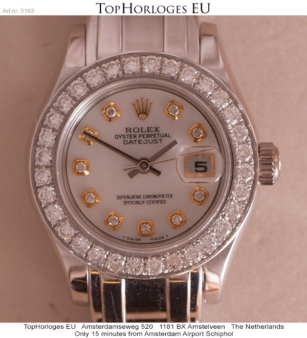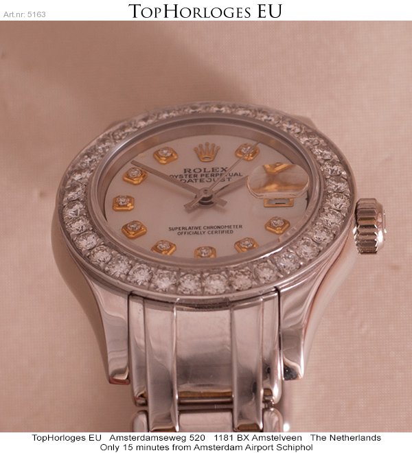 Een zeer mooie Rolex lady datejust Pearlmaster in het witgoud.