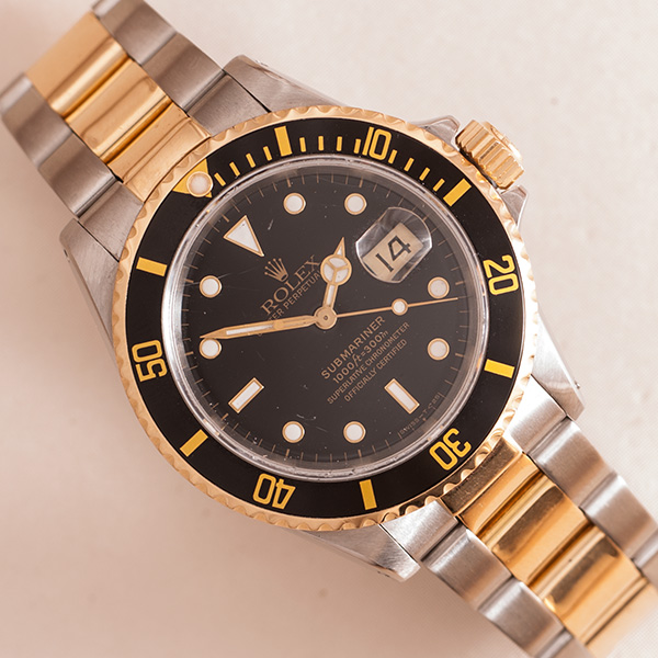 Gold and steel Rolex Submariner, this well-know diver from the early 90's has been worn thru out the years, but is still a stunning watch.