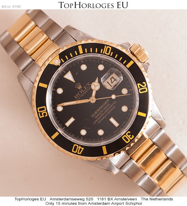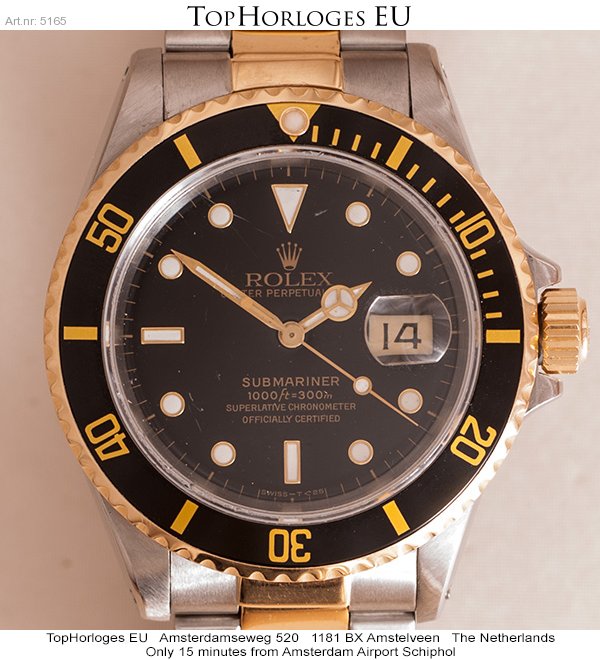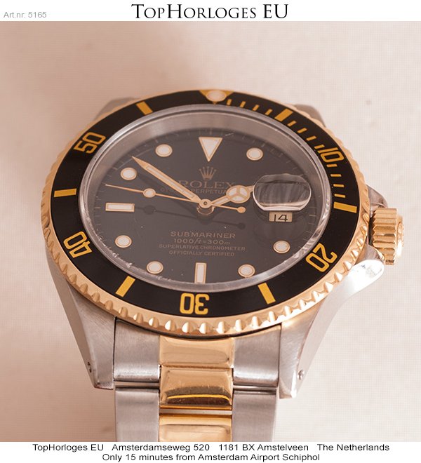 Goudstalen Rolex Submariner, deze duiker uit de begin jaren 90 is in een gedragen maar goede algehele staat.