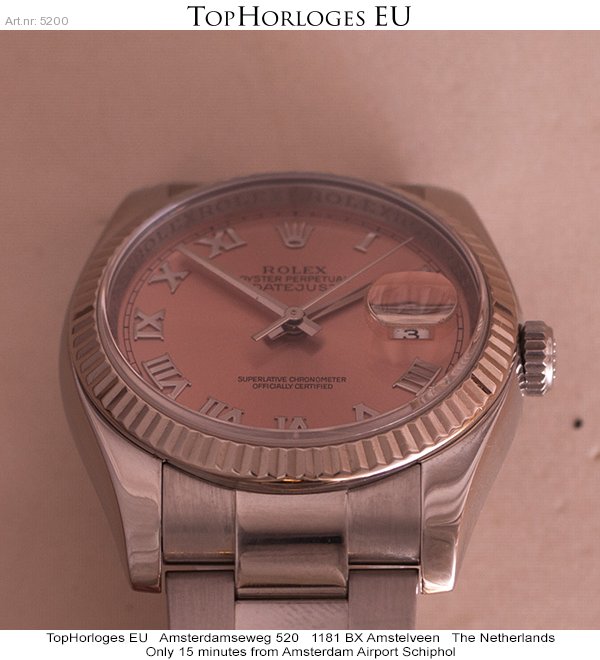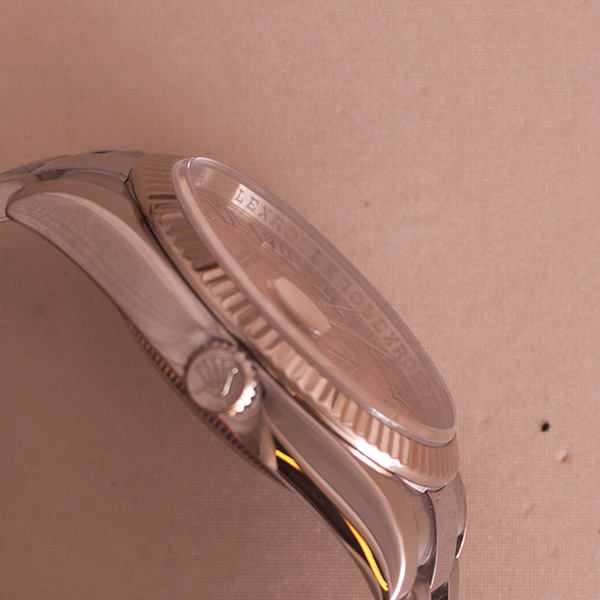 Beautiful 36mm Rolex datejust with whitegold bezel and oyster bracelet.