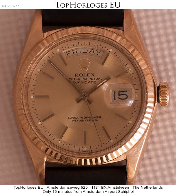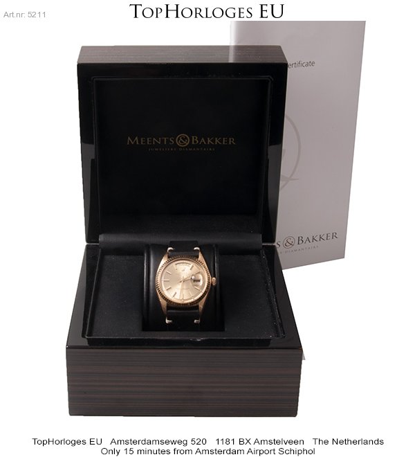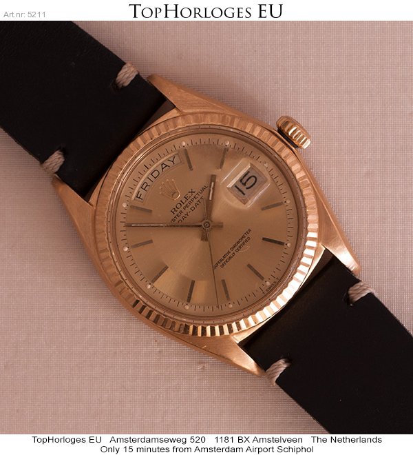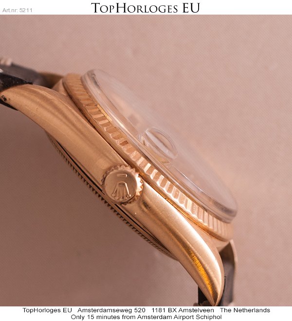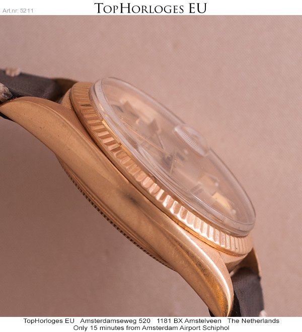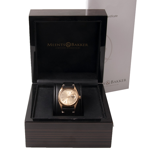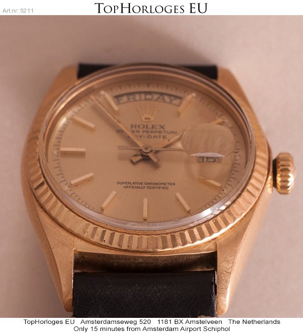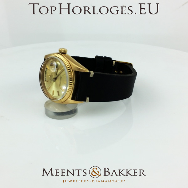 Rolex Day-Date uit de begin jaren 70. Deze geelgouden uitvoering is voor z'n leeftijd in een pracht staat.