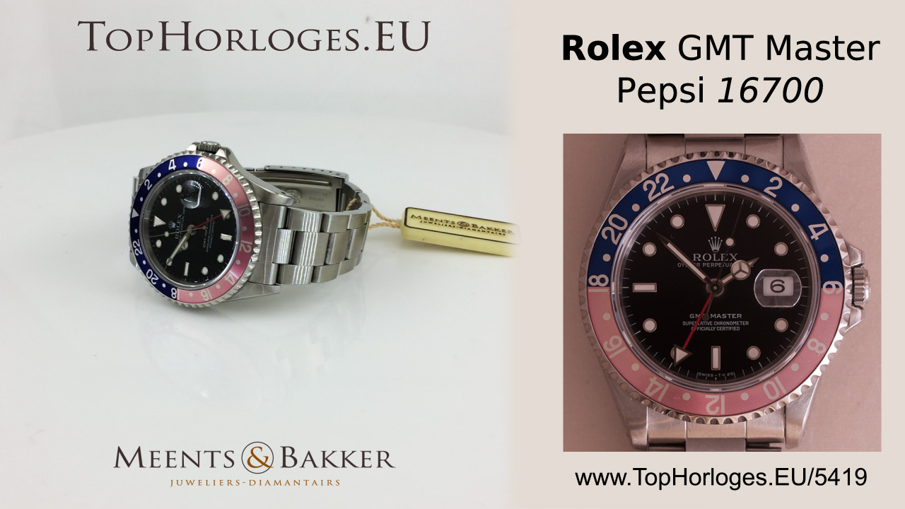 Een zeer mooie stalen Rolex GMT - Master deze 16700 uitvoering is in een prachtige algehele staat. De iconische Pepsi bezel heeft door de jaren heen een schitterende verkleuring ondergaan.
