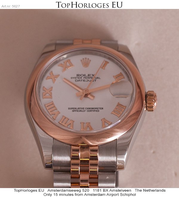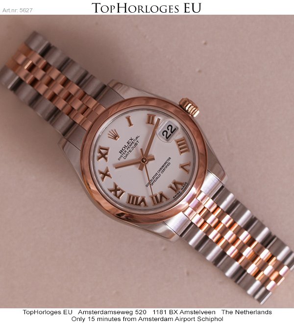 Een schitterende dames Rolex datejust just met jubileuem band, 31mm rozegoud met staal. Deze weinig gedragen midsize uitvoering is in een prachtige staat.