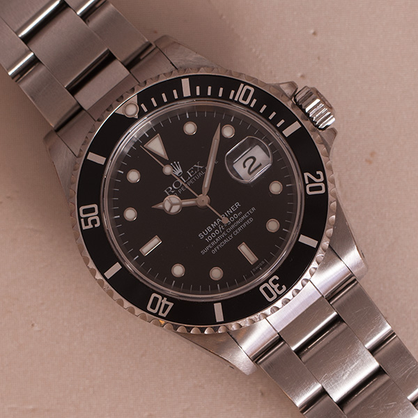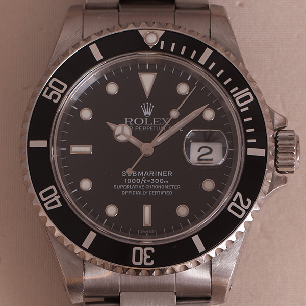 Een zeer mooie Rolex Submariner (swiss-only dial), deze duiker is in een prachtige originele staat en geheel compleet met de dozen, certificaat, boekjes, ankertje en tag's. (1999NL)