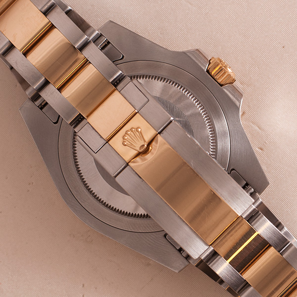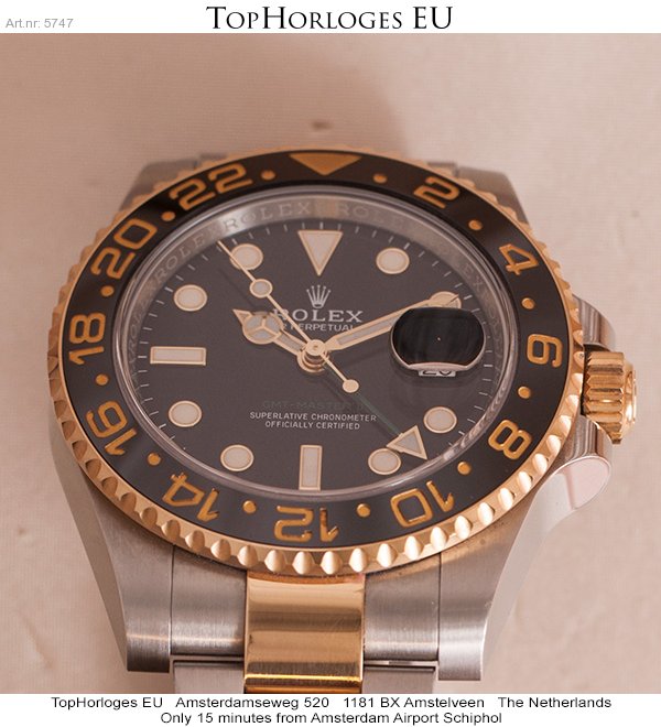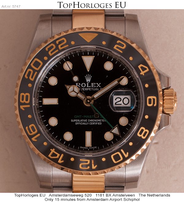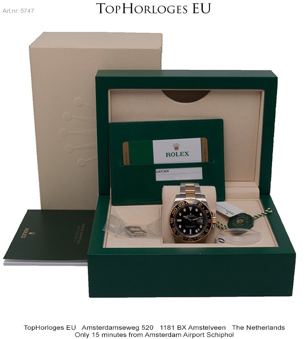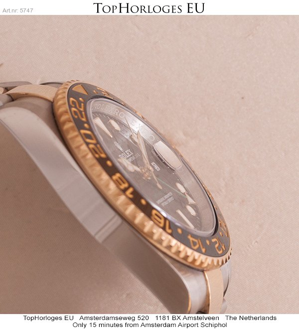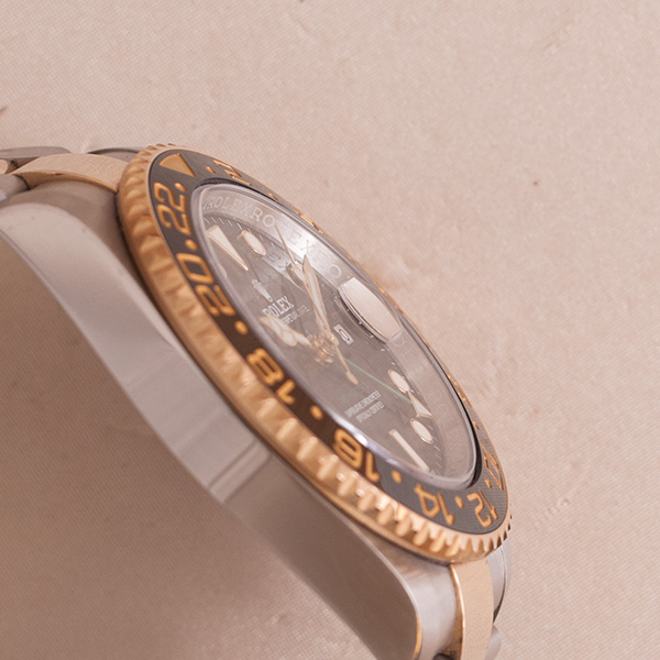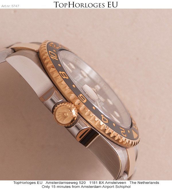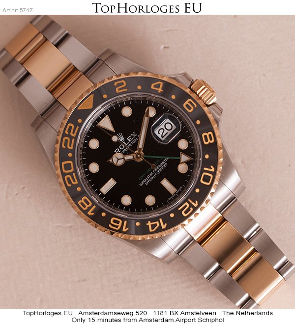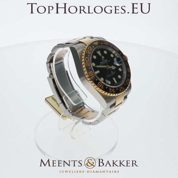 Haast ongedragen Rolex GMT Master II, deze goud-stalen uitvoering is in een schitterende staat.