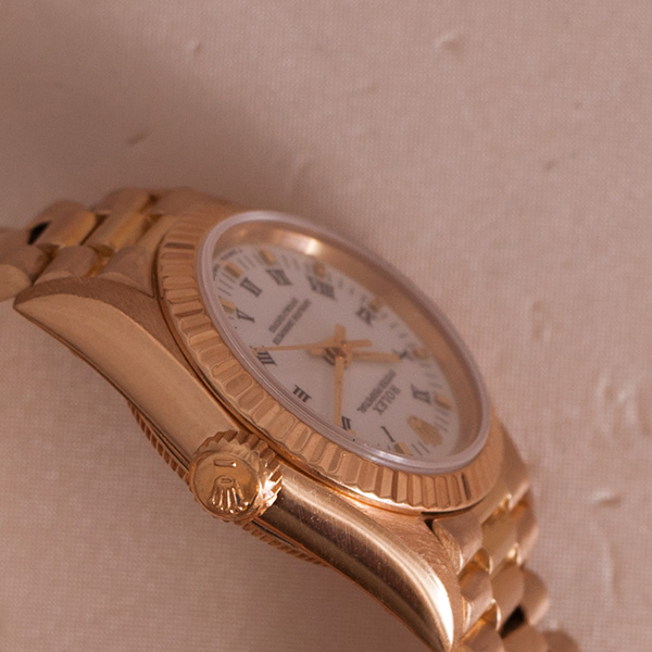 Een weinig gedragen dames Rolex horloge. Deze geheel gouden uitvoering is in een pracht staat.