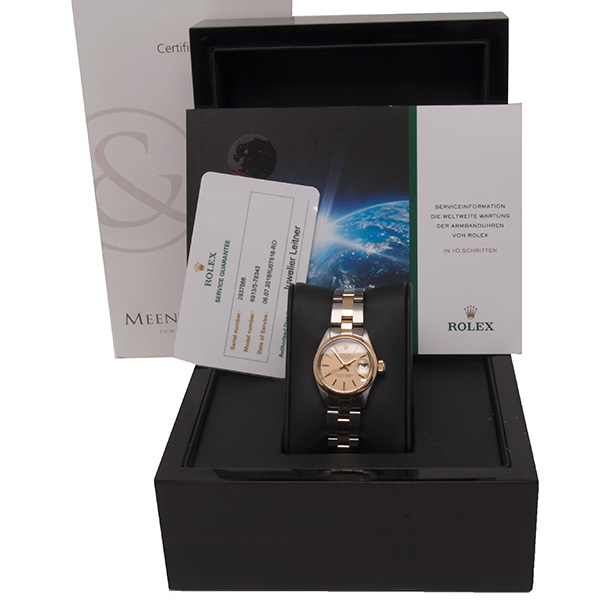 Een vintage dames Rolex Datejust, deze gerevisieerde goud-stalen uitvoering is in een prima staat. Rolex Service 07-2018.