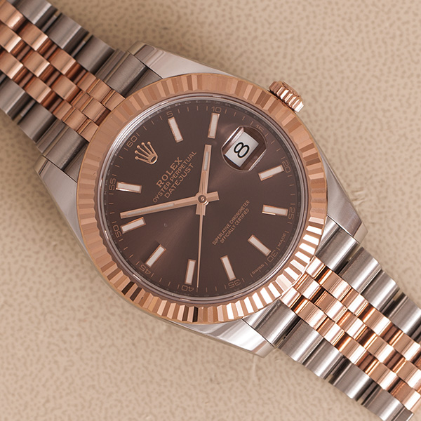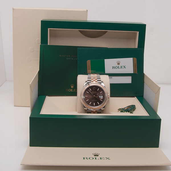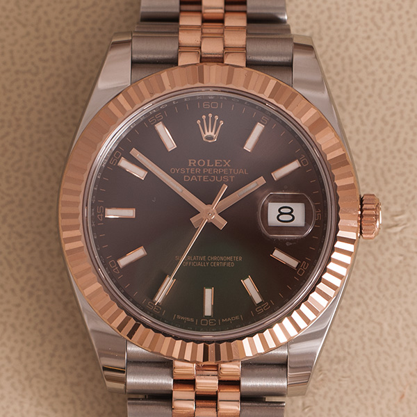 Een haast ongedragen, 99% nieuwe Rolex Datejust II. Deze roze goud met stalen uitvoering is in een schitterende staat.