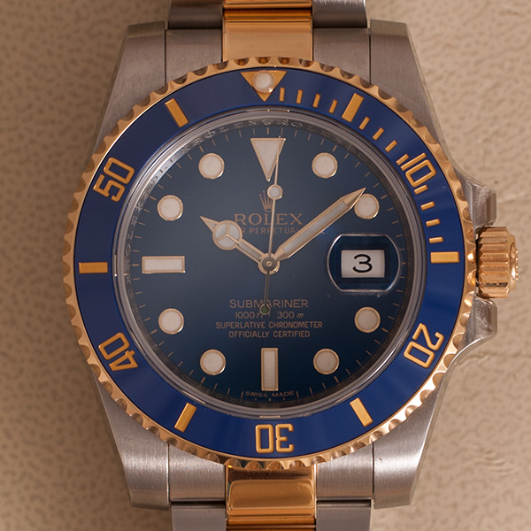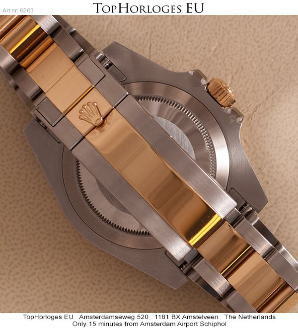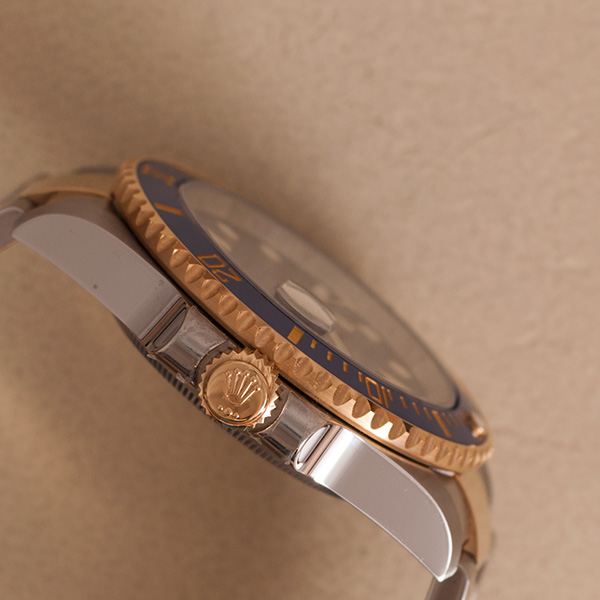 A stunning Rolex Submariner. This gorgeous gold-steel version comes with the lovely Sunburst dial.