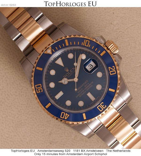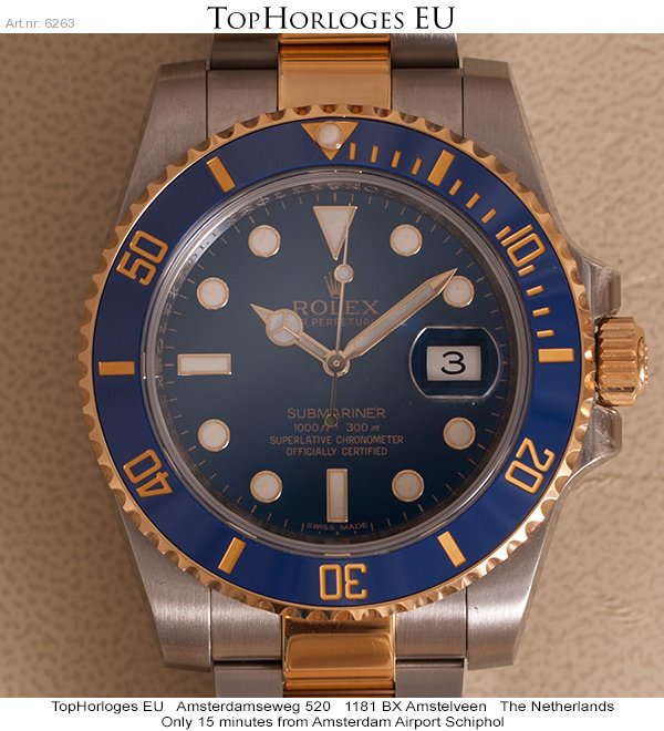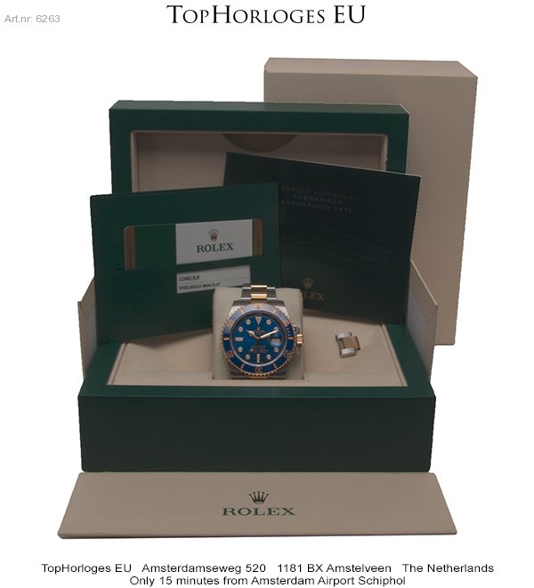 Een absolute haast ongedragen goud-stalen Rolex Submariner met prachtige blauwe Sunburst wijzerplaat.