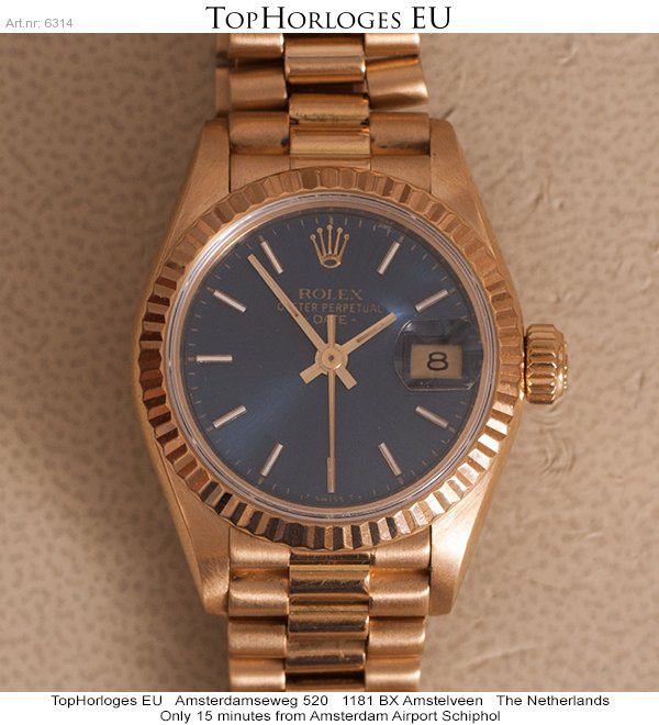 Een mooie dames Rolex datejust in het goud met gouden president band.