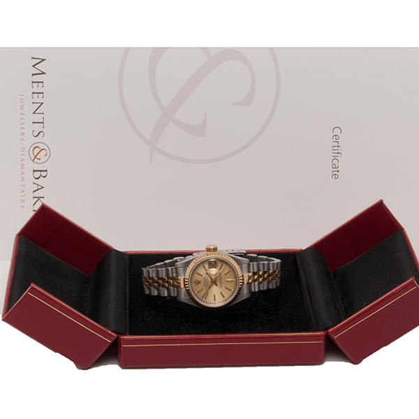 Een zeer weinig gedragen Rolex Datejust, deze goud/stalen dames uitvoering met jubileumband is in een prachtige staat.