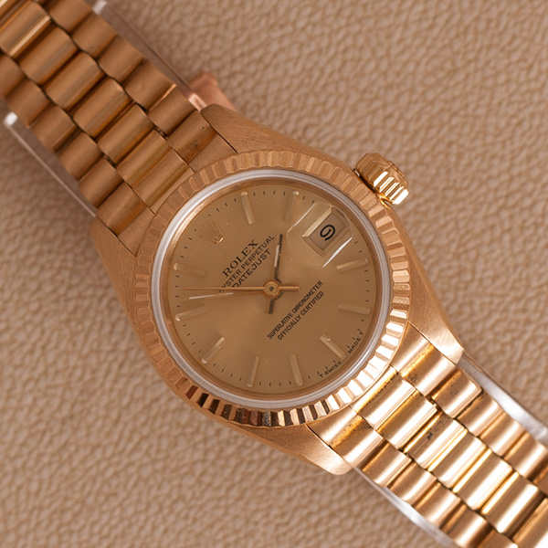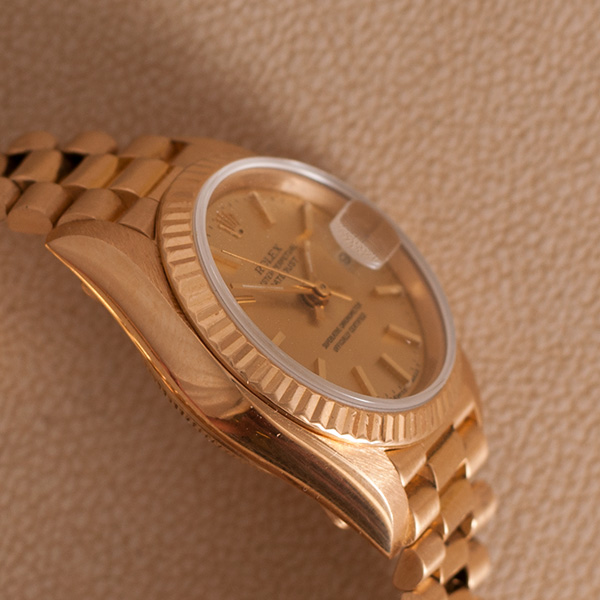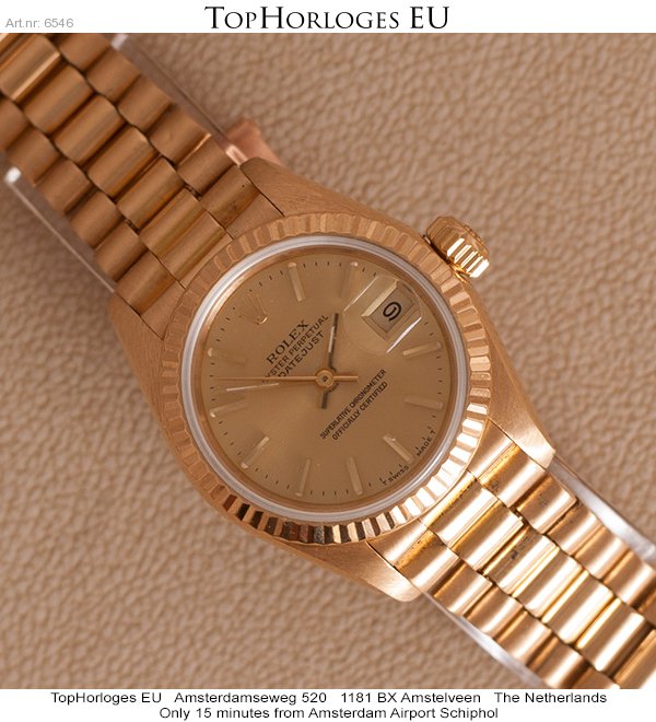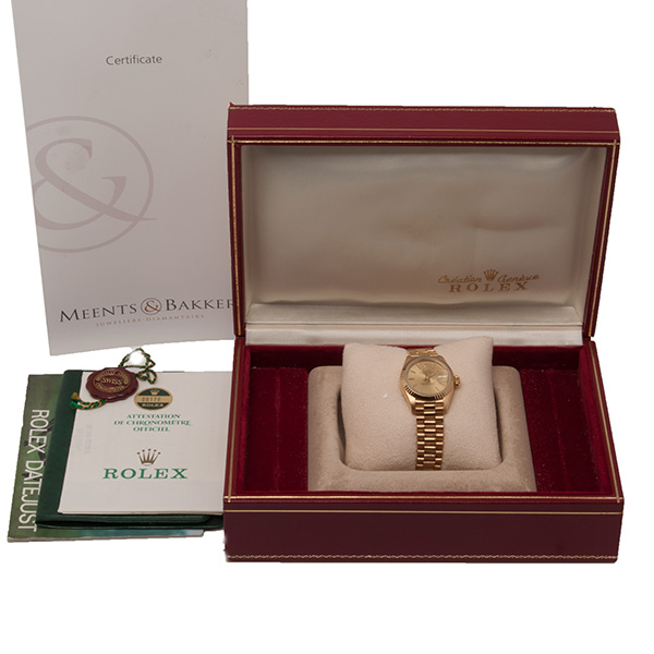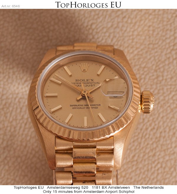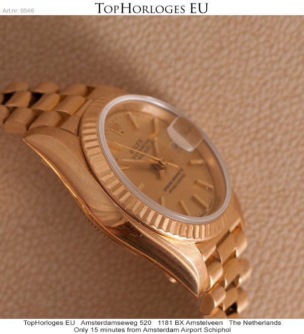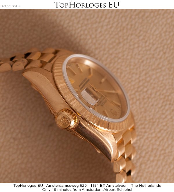 Een mooie dames Rolex datejust in het goud met gouden president band.