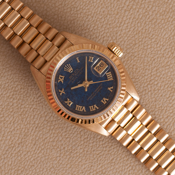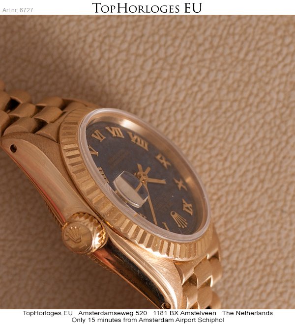 Beautiful ladies rolex Datejust in 18k yellow gold with President bracelet.