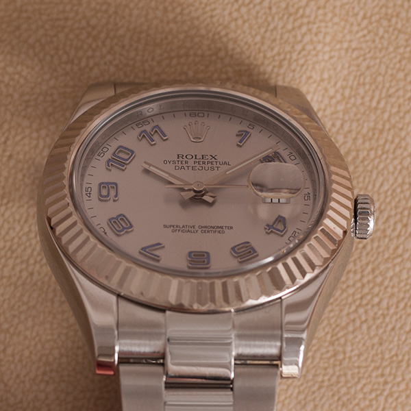 Very nice and desirable steel Rolex Datejust2 with the whitegold bezel.