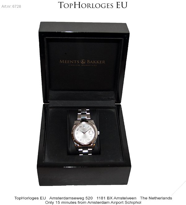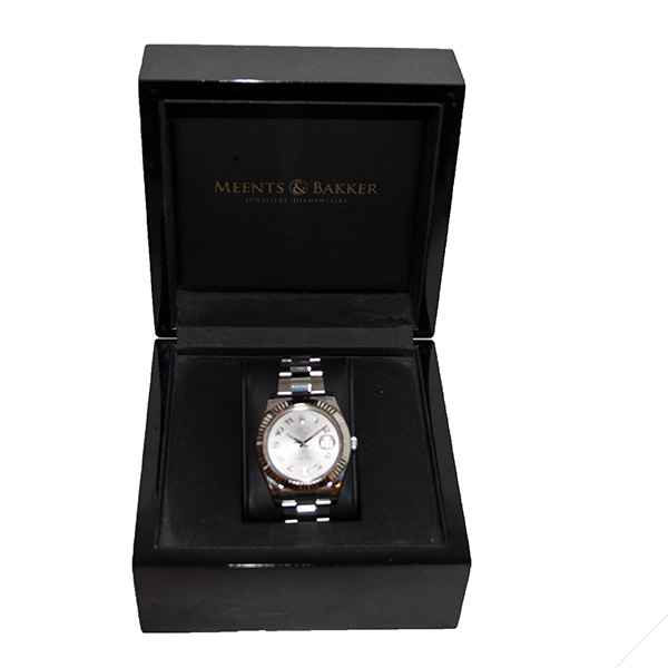 Een prachtige, haast ongedragen Rolex Datejust 2 in het staal met witgouden lunette. Zilvergrijze wijzerplaat met Arabische index.