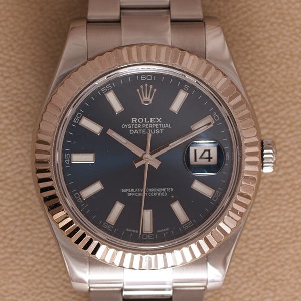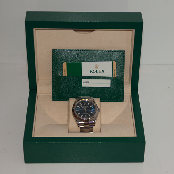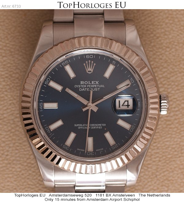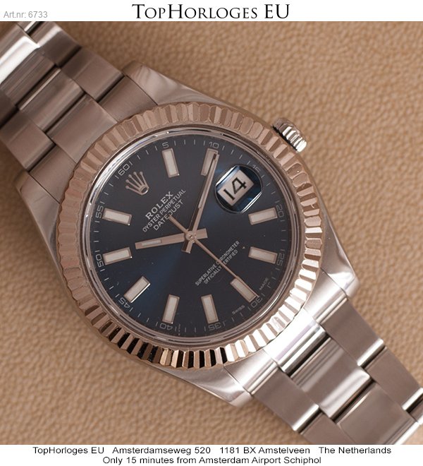 Een zo goed als ongedragen Rolex datejust 2 in het staal met witgouden lunette en blauwe wijzerplaat.